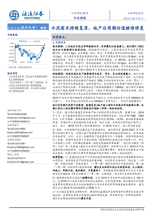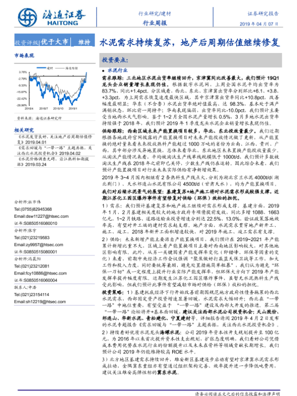 【海通证券】【20190407】建材行业周报:水泥需求持续复苏,地产后周期估值继续修复-8页