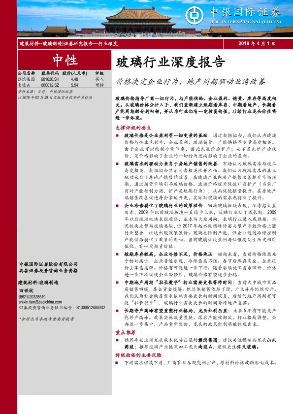 【中银证券】【20190401】玻璃行业深度报告:价格决定企业行为,地产周期驱动业绩改善-31页