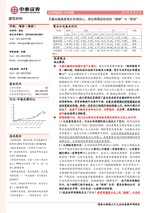 【中泰证券】【20190407】建筑材料行业周报:天量社融再度强化市场信心;简论周期品投资的“春耕”与“秋收”-19页