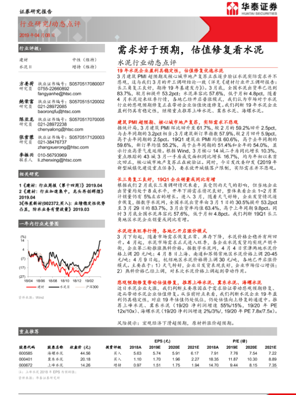 【华泰证券】【20190408】水泥行业动态点评:需求好于预期,估值修复看水泥-2页
