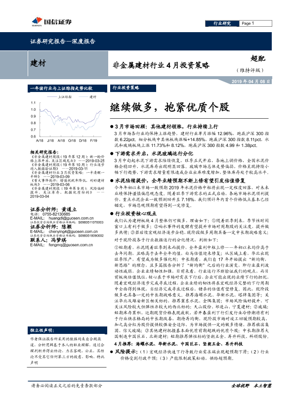 【国信证券】【20190408】非金属建材行业4月投资策略:继续做多,抱紧优质个股-23页