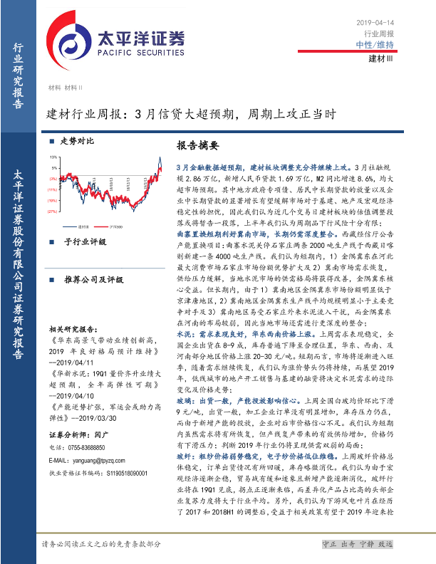 【太平洋证券】【20190414】建材行业周报:3月信贷大超预期,周期上攻正当时-19页