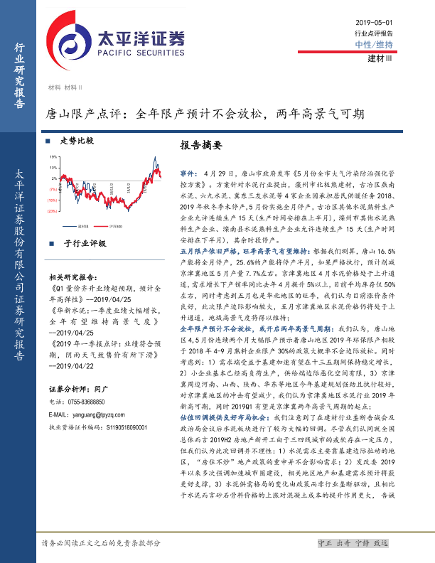 【太平洋证券】【20190501】唐山限产点评:全年限产预计不会放松,两年高景气可期-5页