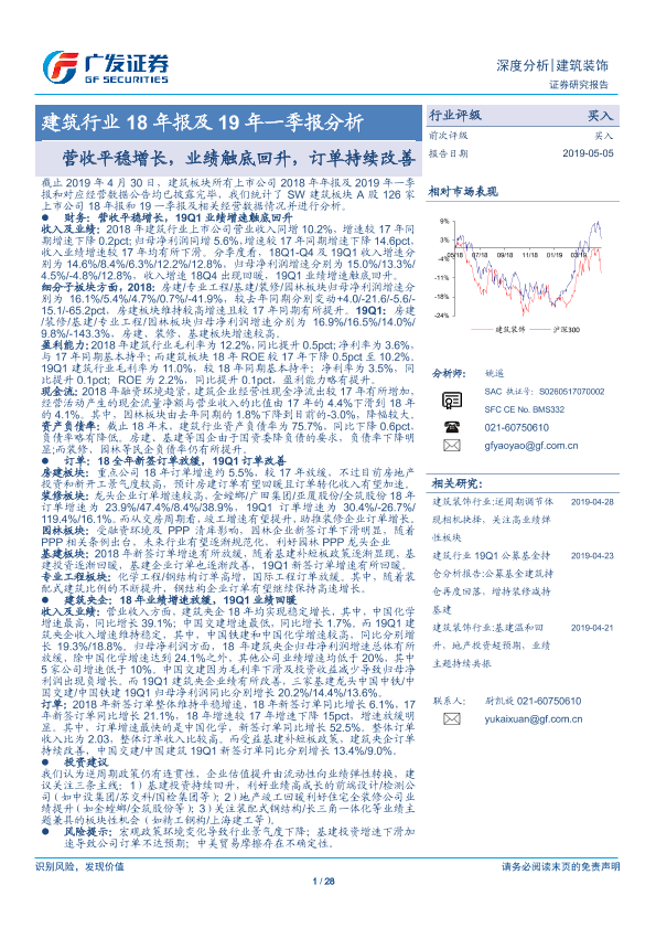 【广发证券】【20190505】建筑行业18年报及19年一季报分析-28页