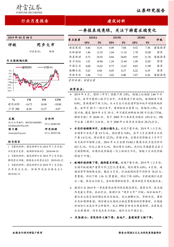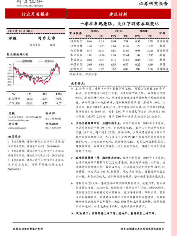 【财信证券】【20190508】建筑材料行业月度报告:一季报表现亮眼,关注下游需求端变化-9页