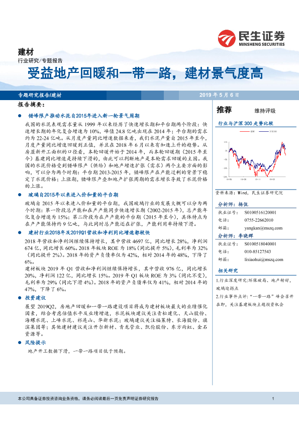【民生证券】【20190506】建材专题报告:受益地产回暖和一带一路,建材景气度高-21页