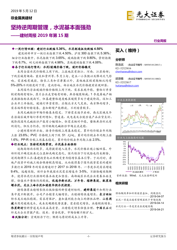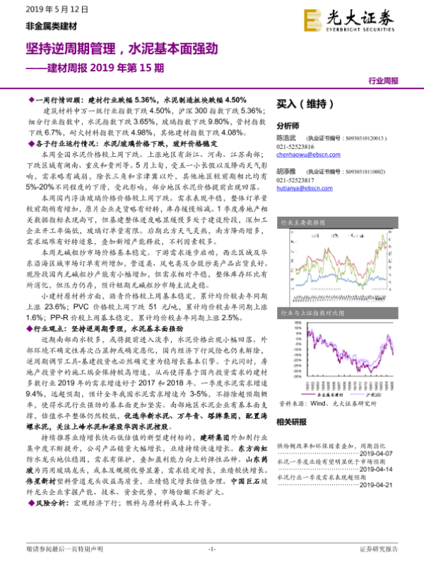 【光大证券】【20190512】建材周报2019年第15期:坚持逆周期管理,水泥基本面强劲-16页