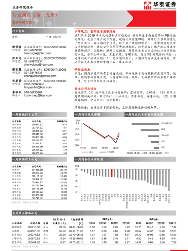 【华泰证券】【20190512】建材行业周报(第十九周)-11页
