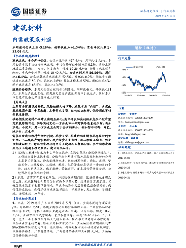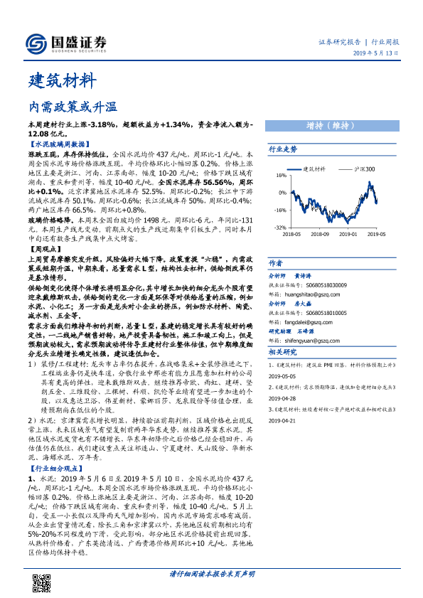 【国盛证券】【20190513】建筑材料行业周报:内需政策或升温-25页