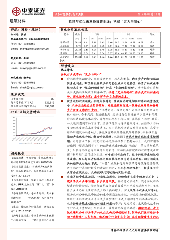 【中泰证券】【20190512】建筑材料行业周报:延续年初以来三条推荐主线;把握‘定力与耐心’-19页