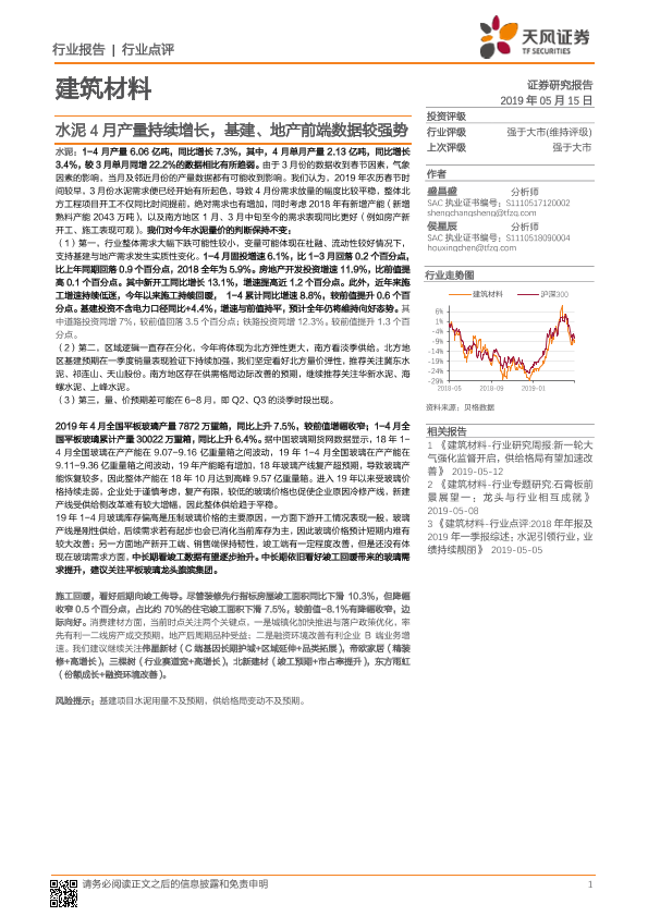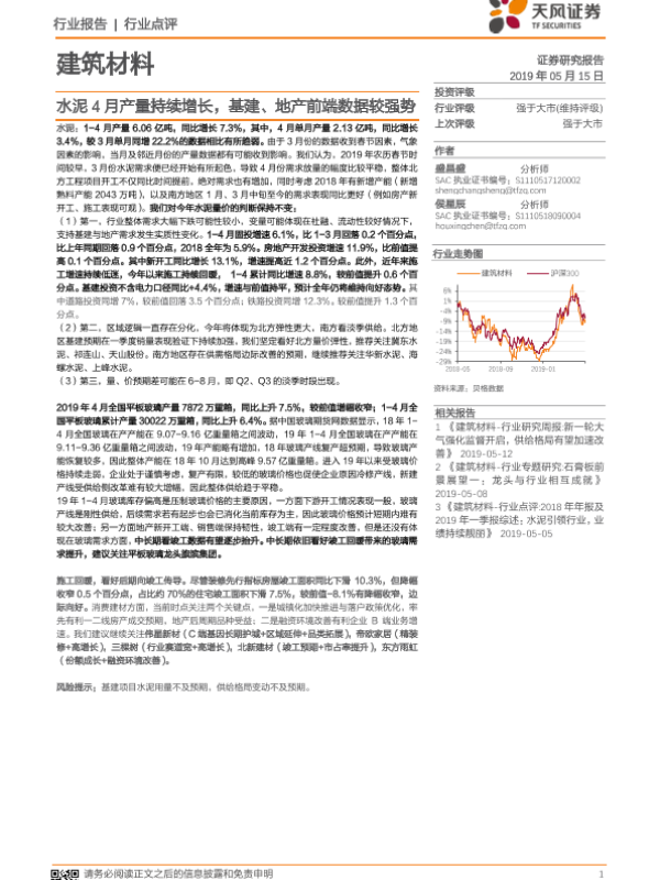 【天风证券】【20190515】建筑材料行业点评:水泥4月产量持续增长,基建、地产前端数据较强势-5页