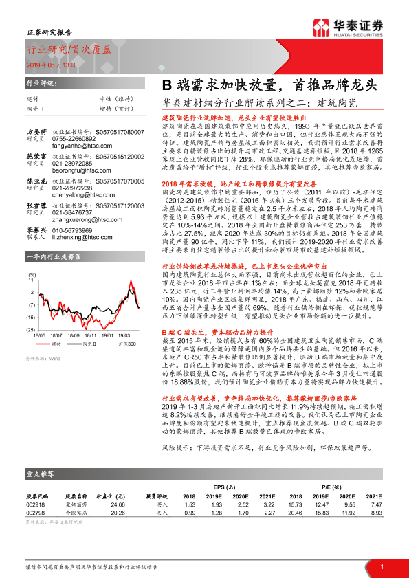 【华泰证券】【20190513】华泰建材细分行业解读系列之二:建筑陶瓷:B端需求加快放量,首推品牌龙头-23页