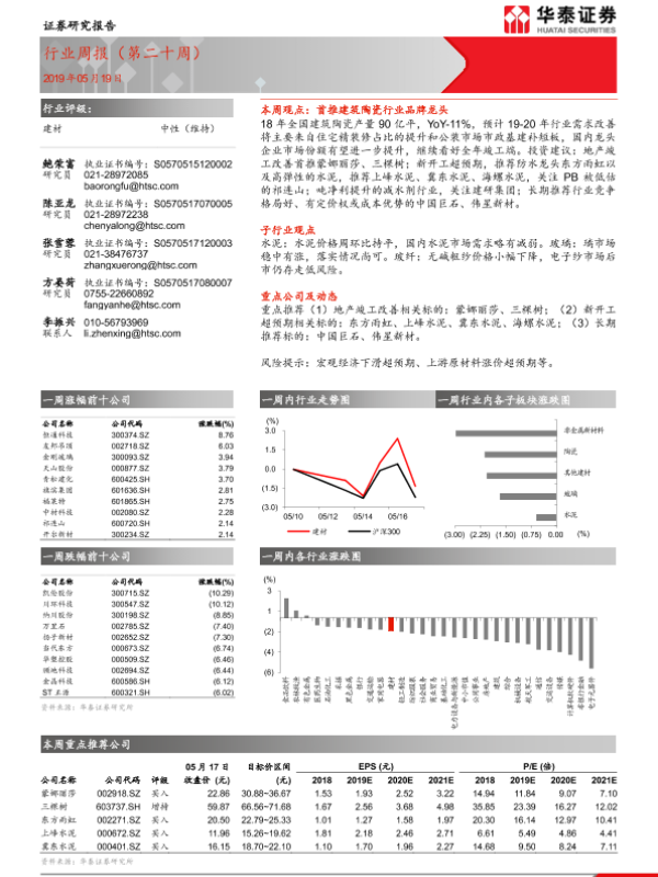 【华泰证券】【20190519】建材行业周报(第二十周)-11页