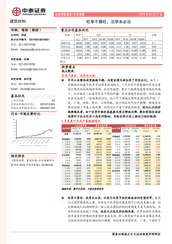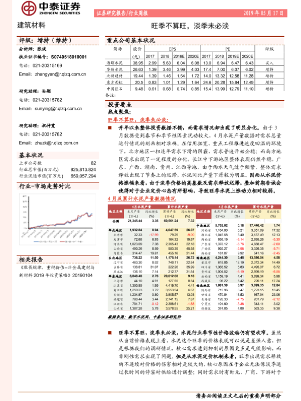 【中泰证券】【20190517】建筑材料行业周报:旺季不算旺,淡季未必淡-21页