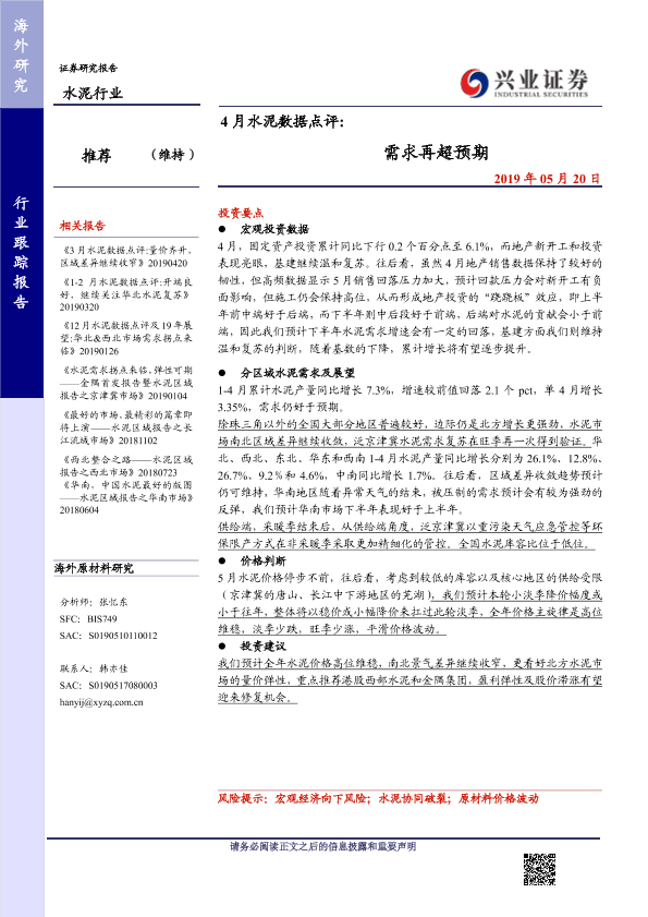 【兴业证券】【20190520】4月水泥数据点评 需求再超预期-10页