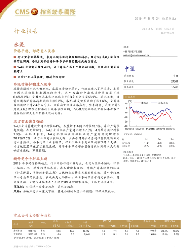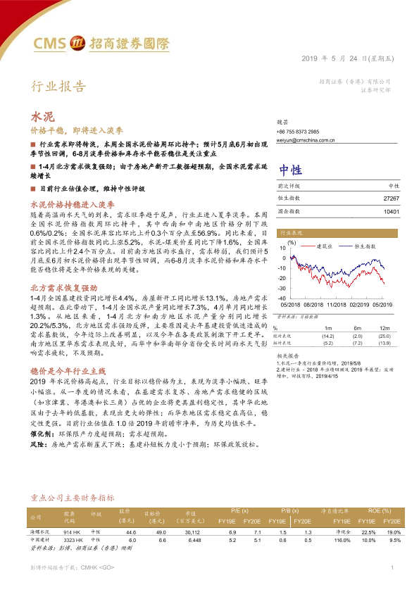 【招商证券(香港)】【20190524】水泥:价格平稳,即将进入淡季-4页