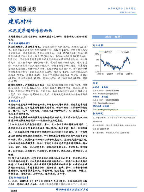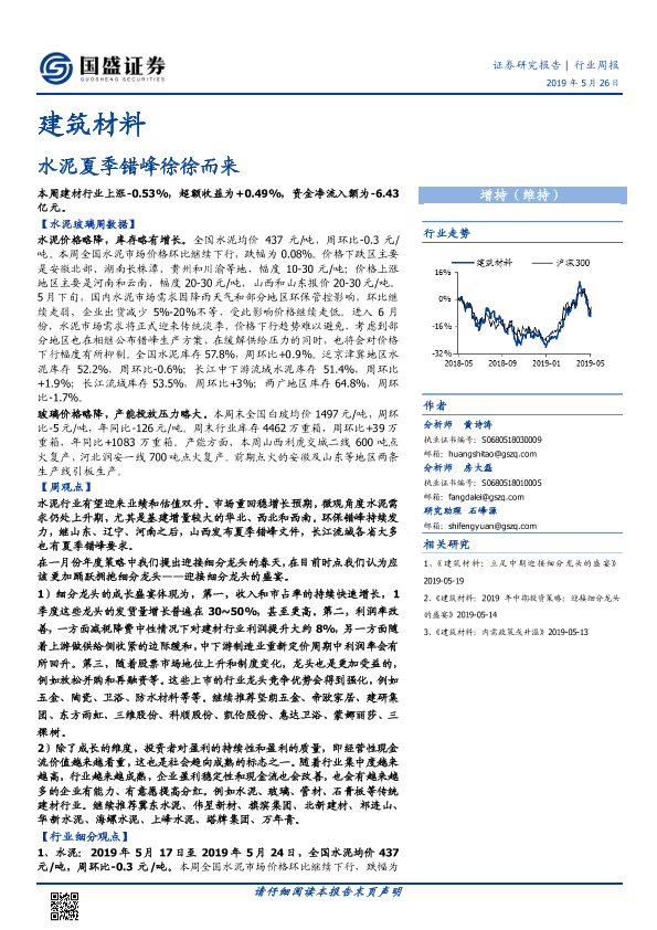 【国盛证券】【20190526】建筑材料行业周报:水泥夏季错峰徐徐而来-23页