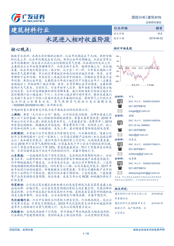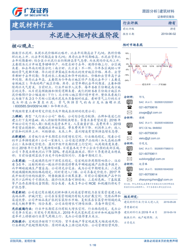 【广发证券】【20190602】建筑材料行业:水泥进入相对收益阶段-10页