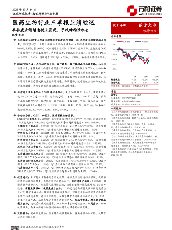 【万和证券】【20221114】医药生物行业三季报业绩综述:单季度业绩增速拐点显现,寻找结构性机会-29页