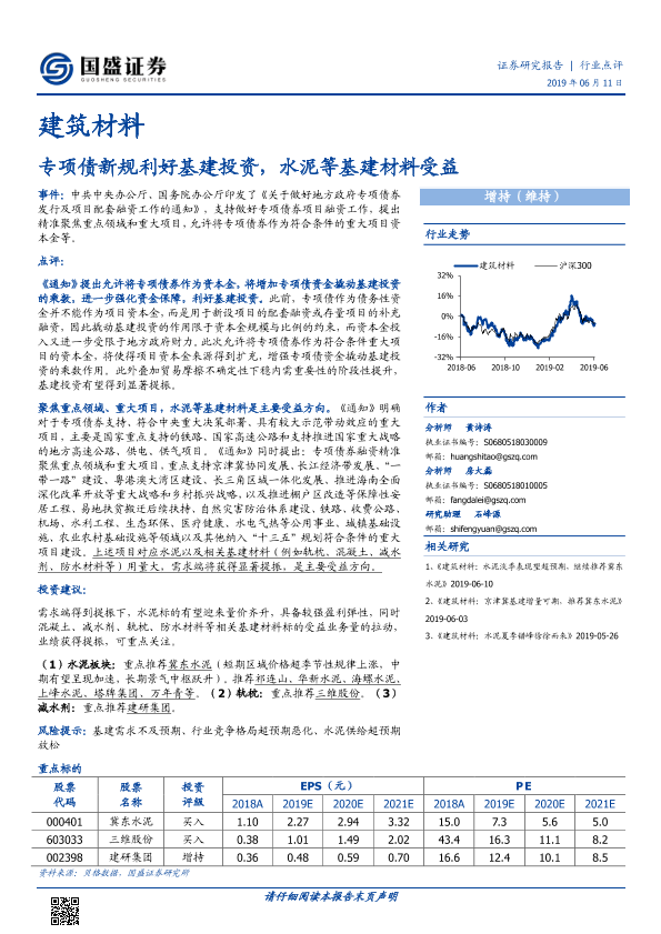 【国盛证券】【20190611】建筑材料行业点评:专项债新规利好基建投资,水泥等基建材料受益-5页