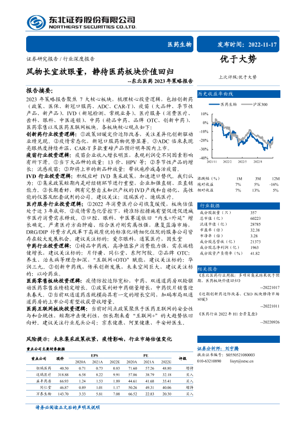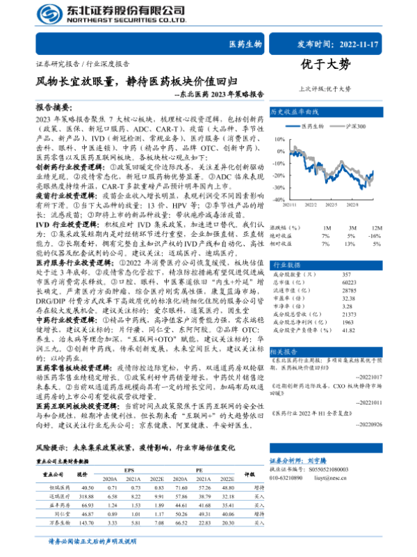 【东北证券】【20221117】医药生物行业东北医药2023年策略报告:风物长宜放眼量,静待医药板块价值回归-64页