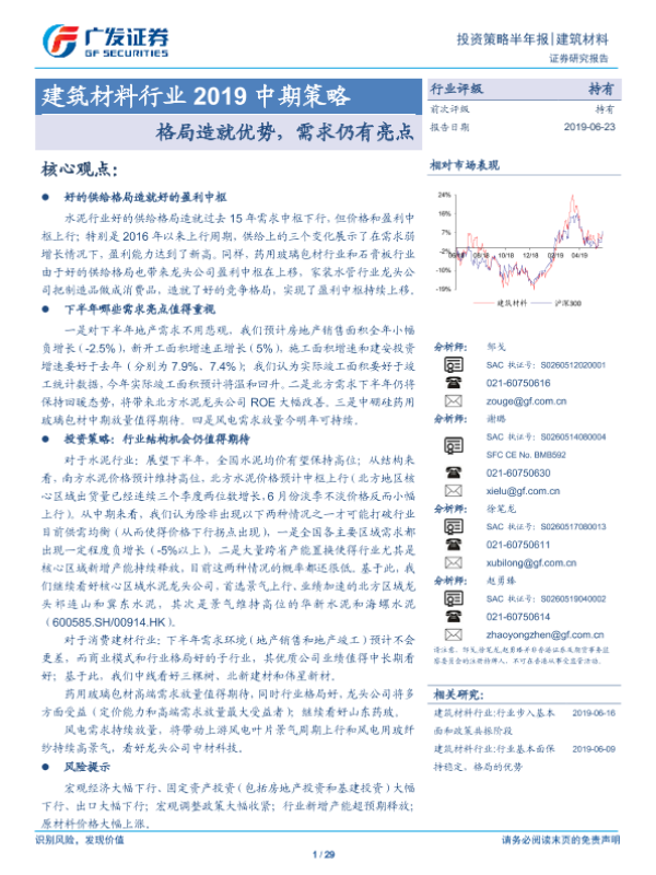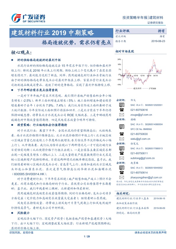 【广发证券】【20190623】建筑材料行业2019中期策略:格局造就优势,需求仍有亮点-29页