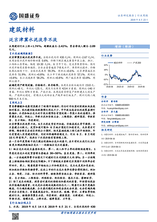 【国盛证券】【20190623】建筑材料行业周报:泛京津冀水泥淡季不淡-25页