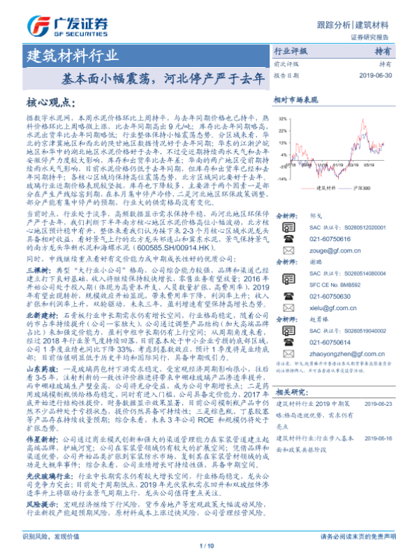 【广发证券】【20190630】建筑材料行业:基本面小幅震荡,河北停产严于去年-10页