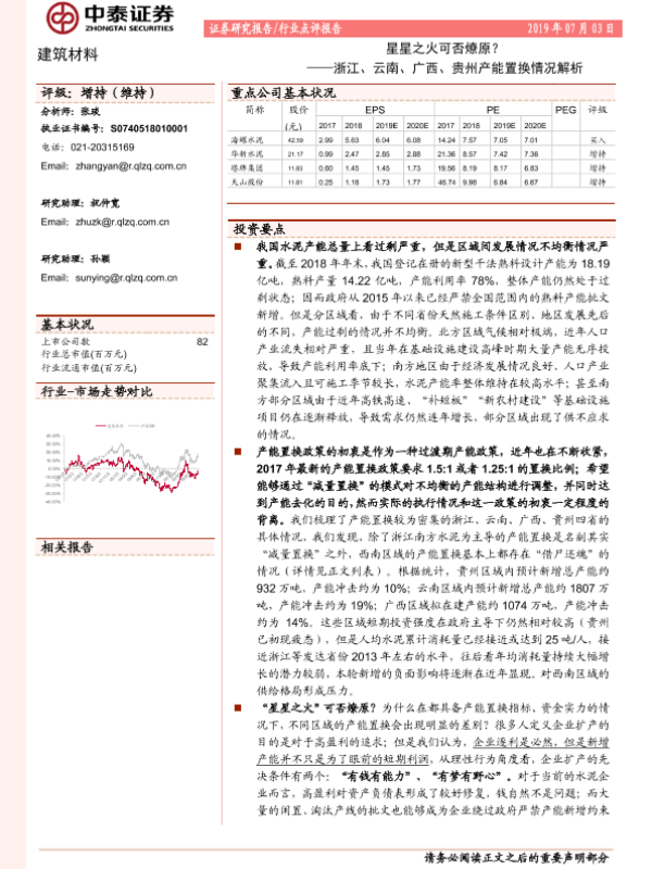 【中泰证券】【20190703】星星之火可否燎原?——浙江、云南、广西、贵州产能置换情况解析-24页