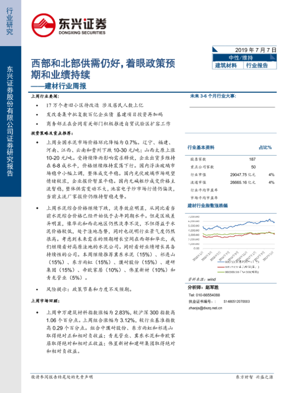【东兴证券】【20190707】西部和北部供需仍好,着眼政策预期和业绩持续-27页