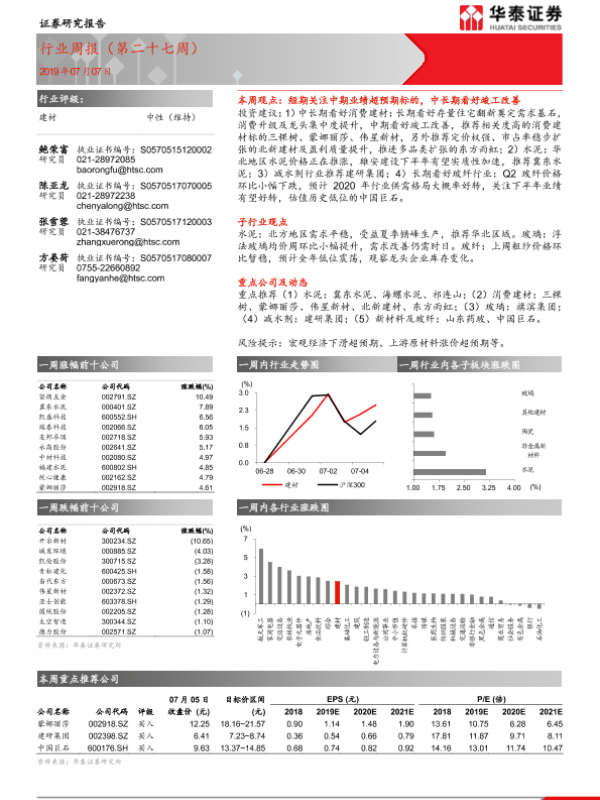 【华泰证券】【20190707】建材行业周报(第二十七周)-10页