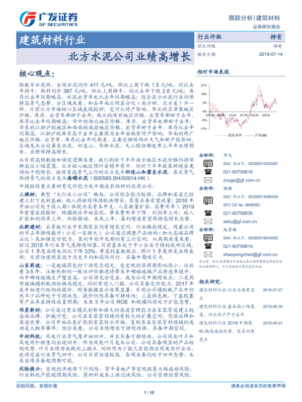 【广发证券】【20190714】建筑材料行业跟踪分析:北方水泥公司业绩高增长-10页