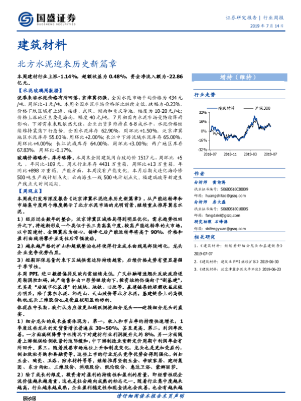 【国盛证券】【20190714】建筑材料行业周报:北方水泥迎来历史新篇章-26页