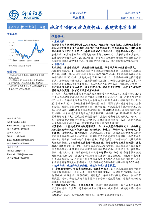 【海通证券】【20190715】地方专项债发放力度仍强,基建需求有支撑-8页
