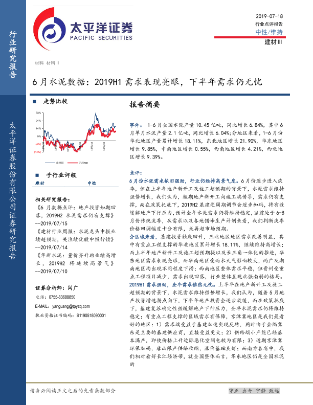 【太平洋证券】【20190718】6月水泥数据:2019H1需求表现亮眼,下半年需求仍无忧-5页