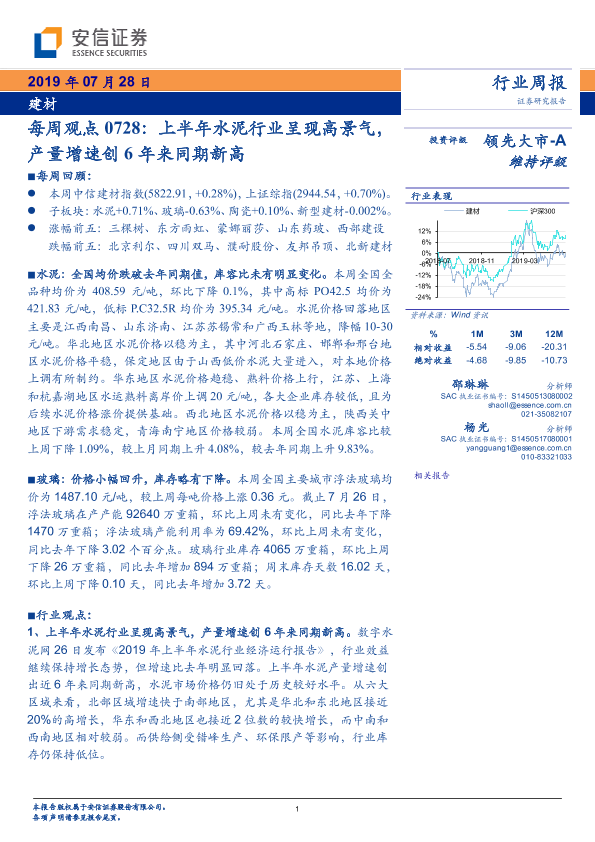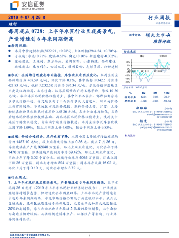 【安信证券】【20190728】上半年水泥行业呈现高景气,产量增速创6年来同期新高-12页