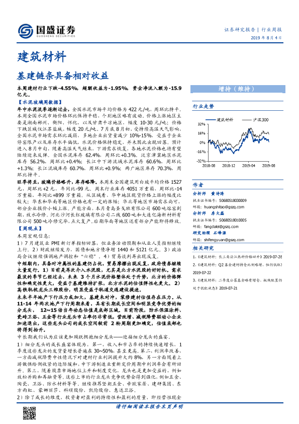 【国盛证券】【20190804】建筑材料行业周报:基建链条具备相对收益-25页