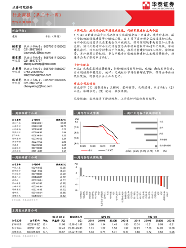 【华泰证券】【20190804】建材行业周报(第三十一周)-9页