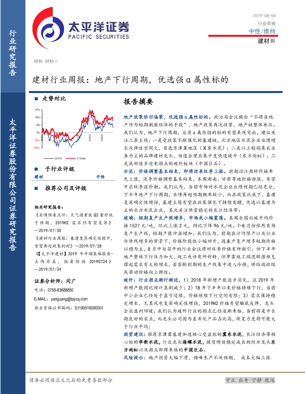 【太平洋证券】【20190804】建材行业周报:地产下行周期,优选强α属性标的-19页