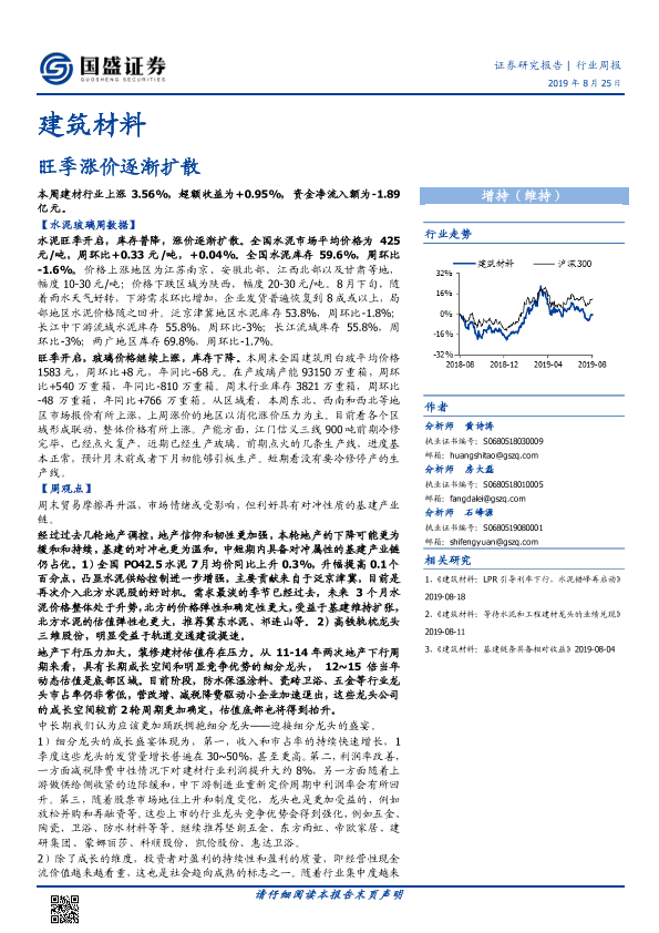 【国盛证券】【20190825】建筑材料行业周报:旺季涨价逐渐扩散-26页