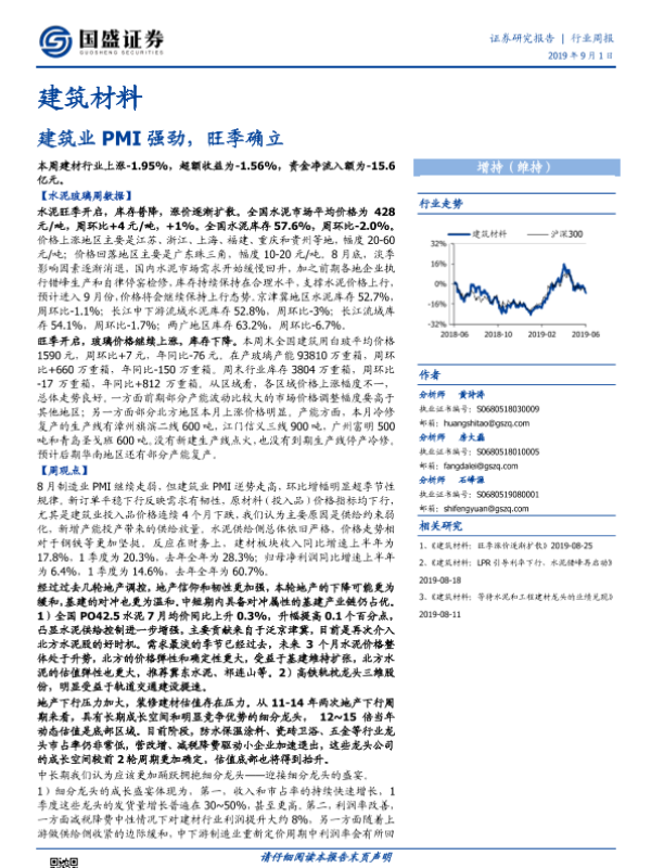 【国盛证券】【20190901】建筑材料行业周报:建筑业PMI强劲,旺季确立-25页