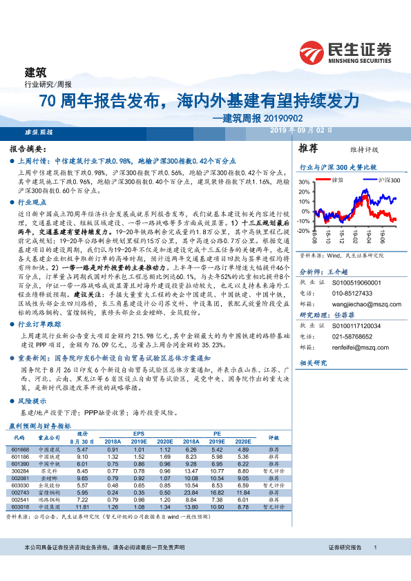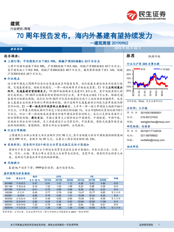 【民生证券】【20190902】建筑周报:70周年报告发布,海内外基建有望持续发力-19页