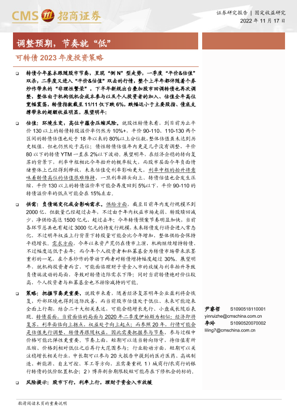 【海通证券】【20221117】可转债2023年度投资策略:调整预期,节奏就“低”-29页