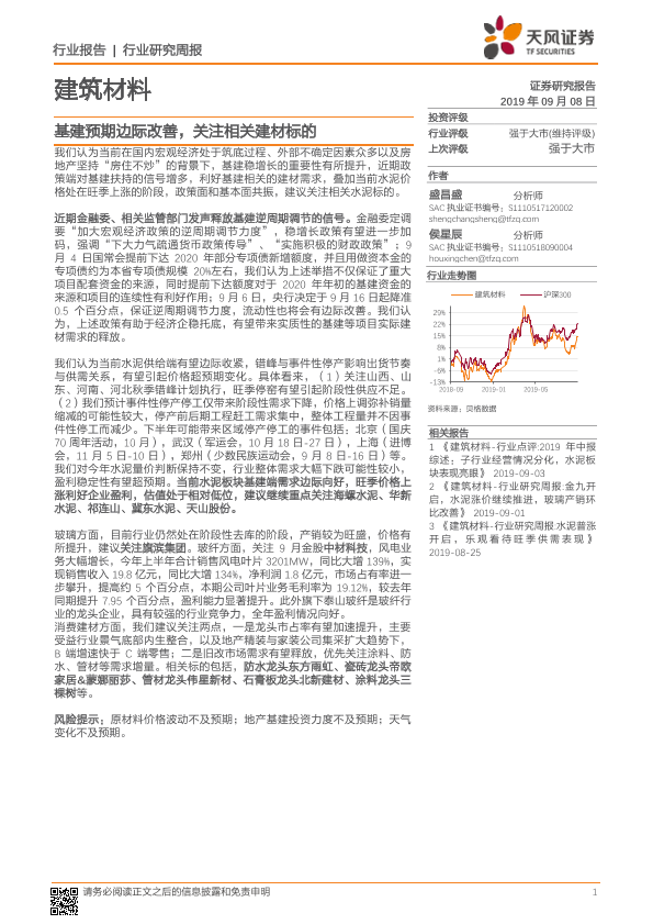 【天风证券】【20190908】建筑材料行业研究周报:基建预期边际改善,关注相关建材标的-11页