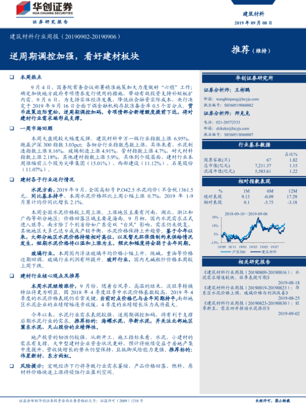 【华创证券】【20190908】建筑材料行业周报:逆周期调控加强,看好建材板块-12页