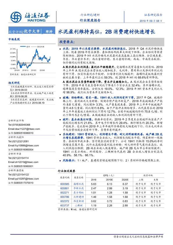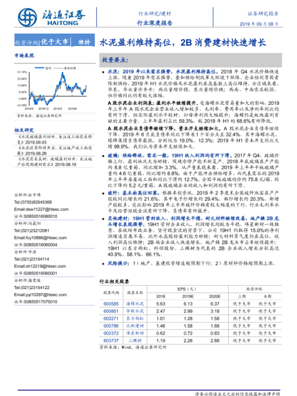 【海通证券】【20190908】水泥盈利维持高位,2B消费建材快速增长-25页