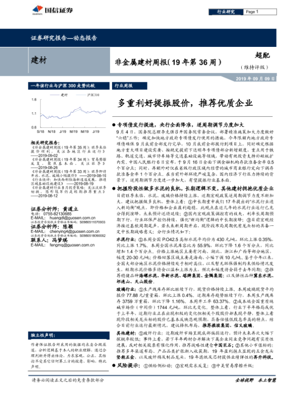【国信证券】【20190909】非金属建材周报:多重利好提振股价,推荐优质企业-16页