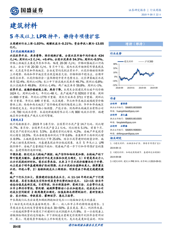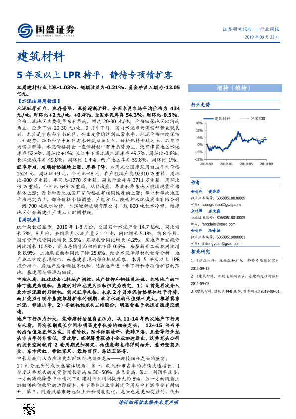 【国盛证券】【20190922】建筑材料行业周报:5年及以上LPR持平,静待专项债扩容-25页