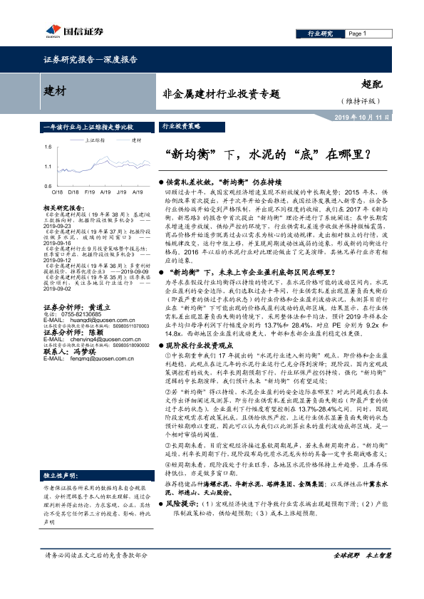 【国信证券】【20191011】“新均衡”下,水泥的“底”在哪里?-16页
