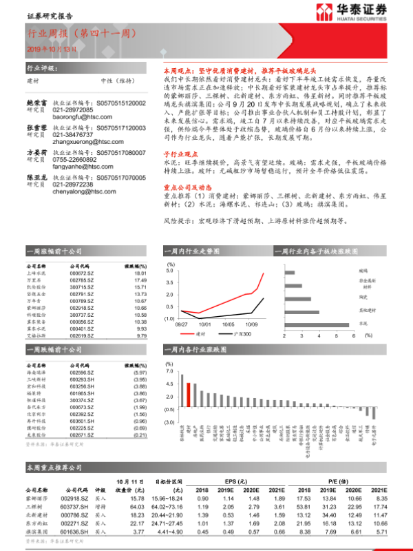 【华泰证券】【20191013】建材行业周报(第四十一周)-10页